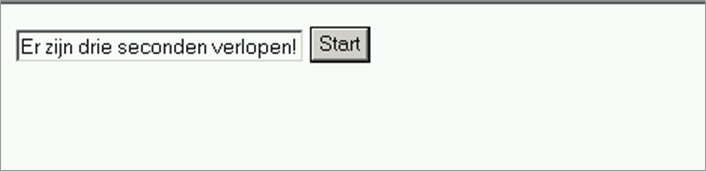 TimeoutsBij een aantal methodes van het object window kun je gebruik maken van timeouts. Een timeout is een statement die uitgevoerd wordt nadat een bepaalde tijd is verstreken. Je gebruikt ze bijvoorbeeld voor een klok of een scrollende tekst in de statusbalk. De algemene vorm van een statement met setTimeout()is: SetTimeout ("statements", wachttijd_in_milliseconden) Alle statements moeten tussen dubbele aanhalingstekens staan. De teller wordt aangegeven in milliseconden (duizendsten van een seconde). Wil je een wachttijd van een minuut, dan wordt de waarde 6000. De functie clearTimeout()gebruik je om een lopende timer die gestart is met de functie setTimeout() te stoppen. De parameter van clearTimeout() is het getal die setTimeout() teruggeeft, zodra de timer begint te lopen. Je kunt dit getal opslaan in een variabele. In het onderstaande script wordt eerst aan de variabele i de waarde 0 toegekend. In de functie stop_timer wordt de timer stopgezet en de inhoud van de statusbalk gewist.