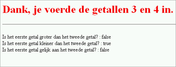 In de eerste regel van het script wordt de bezoeker om een naam gevraagd. De variabele naam krijgt de waarde van de invoer. In het eerste if-statement wordt er gekeken of de bezoeker wel een naam heeft ingevuld (naam==("")). Wanneer dat het geval is, wordt aan de variabele de waarde anoniem toegekend. Wanneer de vergelijking niet waar is, dan gaat JavaScript gewoon verder met het volgende statement. Er is geen else gebruikt. In het tweede if-statement is er wel een else gebruikt. Wanneer de vergelijking naam=="anoniem" waar is komt de tekst Jammer dat u geen naam niet wilt opgeven! op het scherm. Wanneer de bezoeker wel een naam heeft ingevuld, worden de regels na het keyword else uitgevoerd.