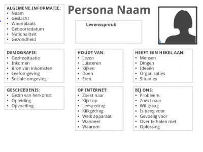 De resultaten van het hele onderzoek verwerk je in een marketingplan. Van de doelgroep maak je een persona.